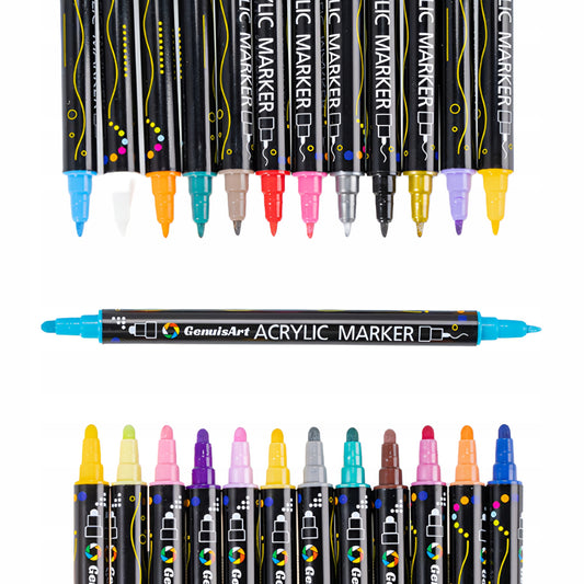 Pisaki akrylowe wodoodporne – MARKERY DWUSTRONNE DO RYSOWANIA I MALOWANIA, ZESTAW 24 KOLORY