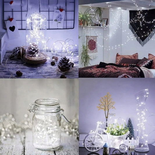 Lampki na druciku na baterie biały zimny