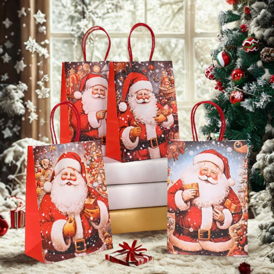 Papierowa torba świąteczna na prezenty - 270x210x110mm - 4 wzory - ZESTAW #2 - ŚREDNI ROZMIAR