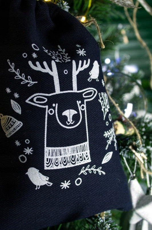 Świąteczny worek bawełniany z reniferem 15x20cm