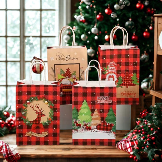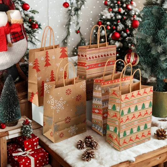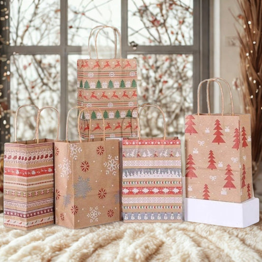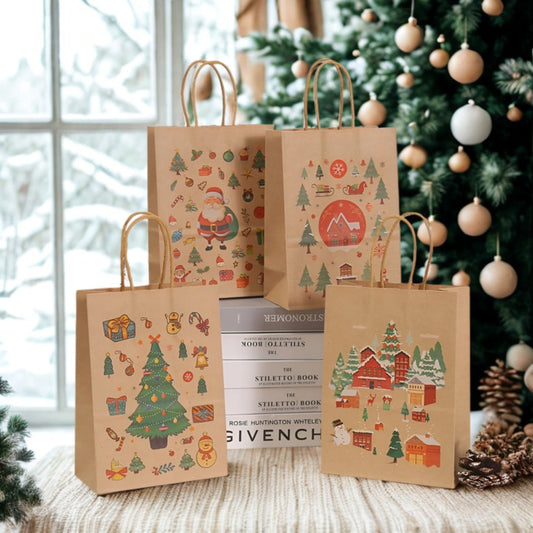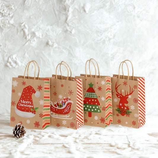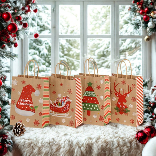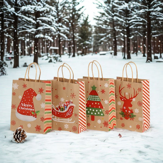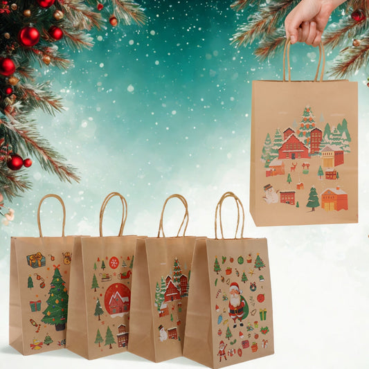 Zestaw Papierowych torebek świątecznych - 270x210x110 - 4 rodzaje - ZESTAW #1 - ŚREDNI ROZMIAR