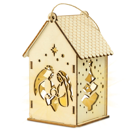 Świąteczny Domek drewniany, lampion LED