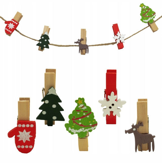 Świąteczne Klamerki Drewniane, dekoracyjne 10szt.