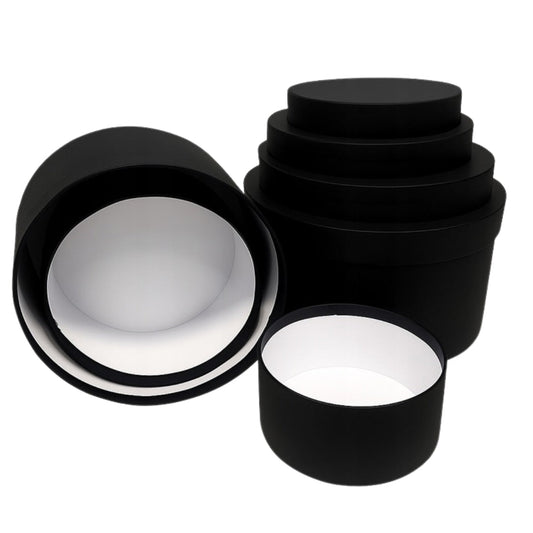 Okrągłe, czarne pudełka na prezenty, upominki - ZESTAW 4 SZTUKI