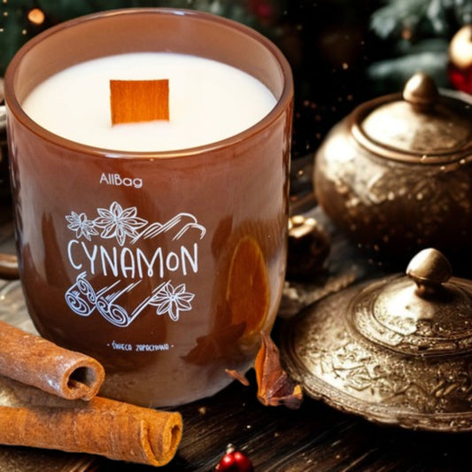 Świeca sojowa zapachowa - ZAPACH CYNAMONOWY - świeczka zapachowa na stół świąteczny