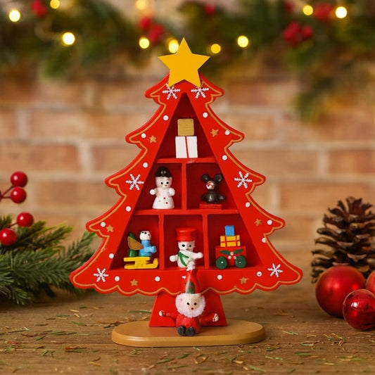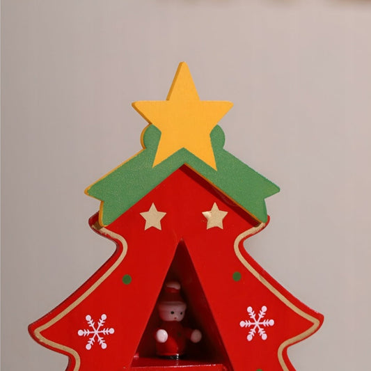 Drewniana figurka na biurko "Świąteczna Choinka - czerwona - OZDOBA ŚWIĄTECZNA Z DREWNA