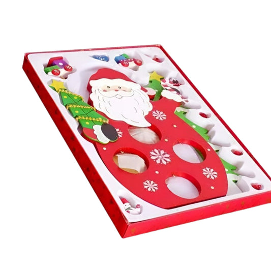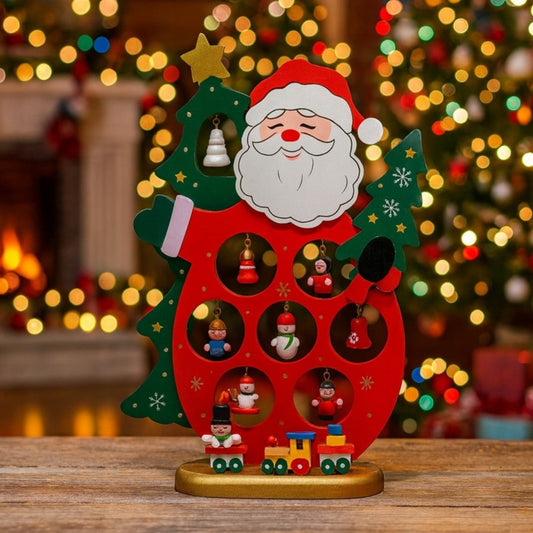 Drewniana figurka na biurko "Święty Mikołaj" - OZDOBA ŚWIĄTECZNA Z ZAWIESZKAMI