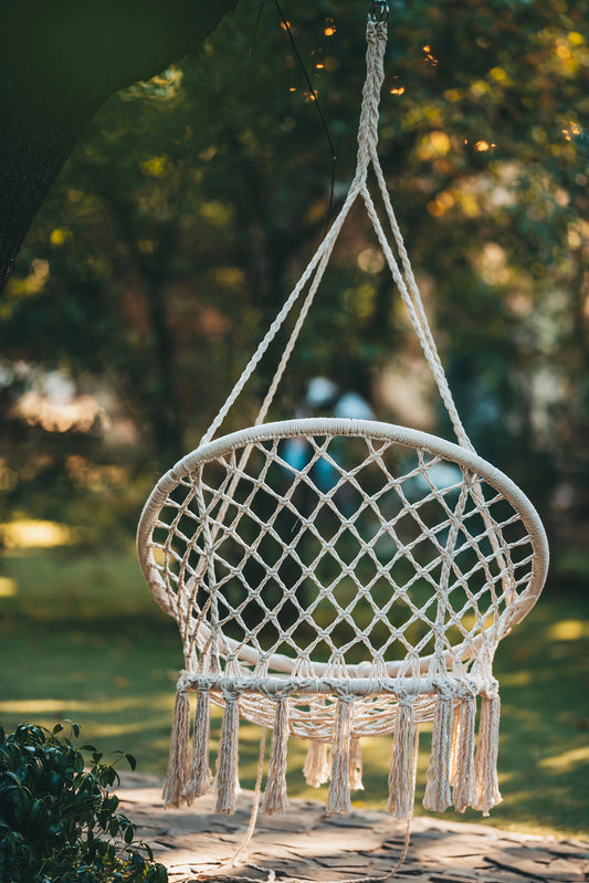 WISZĄCY FOTEL BOHO HUŚTAWKA OGRODOWA DO DOMU NA TARAS BOCIANIE GNIAZDO ECRU