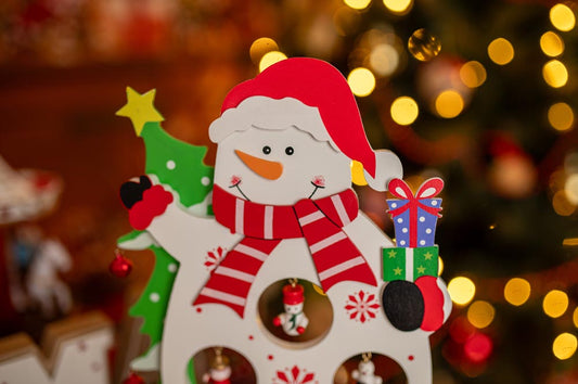 Drewniana figurka na biurko "Bałwanek zimowy" - OZDOBA ŚWIĄTECZNA Z ZAWIESZKAMI