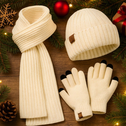 Ciepły zestaw zimowy - czapka, szalik, rękawiczki - DAMSKI KOMPLET ZIMOWY