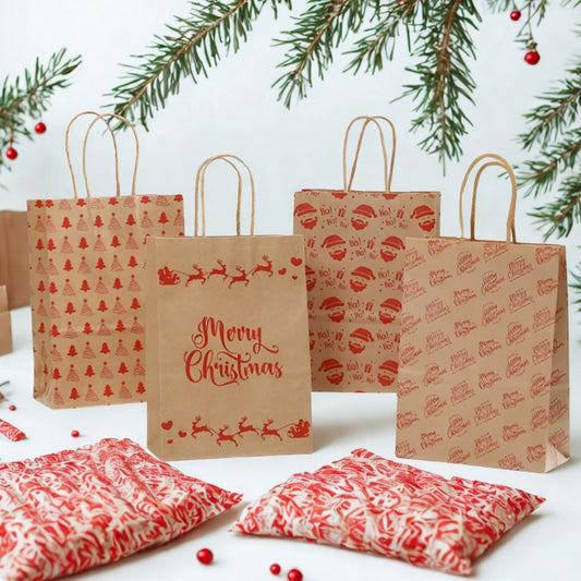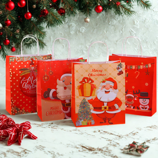 Christmas Paper Gift Bags - 270x210x110mm - 4 Patterns - SET #5 - MEDIUM SIZE