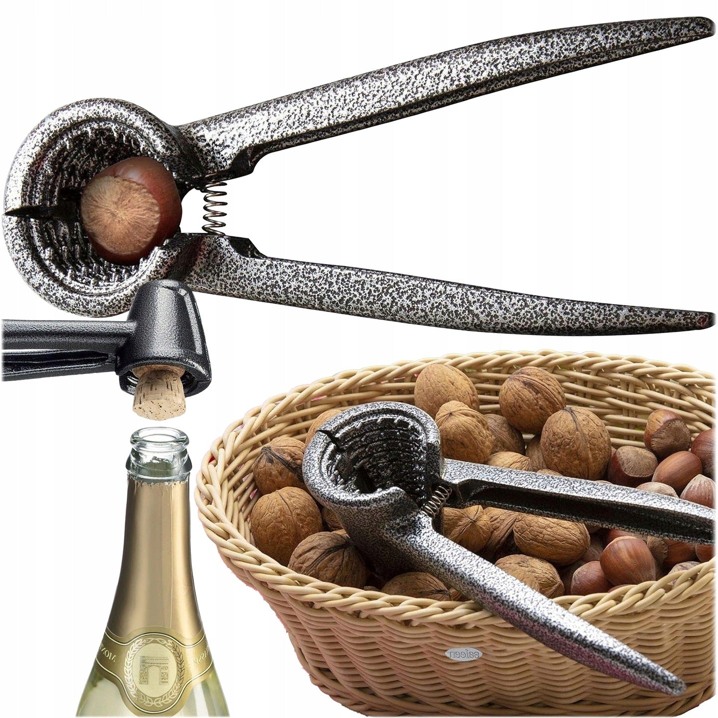 - Wszechstronność: Idealny do rozłupywania różnorodnych orzechów, takich jak włoskie, laskowe czy migdały, oraz jako otwieracz do butelek.