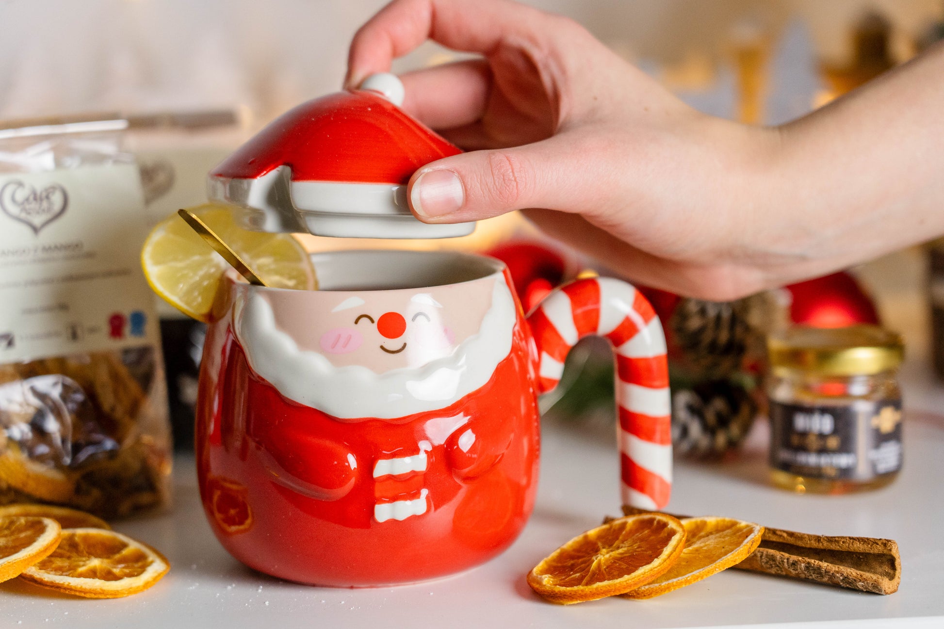 Kubek świąteczny z motywem "Mikołaj" z pokrywką 400ml