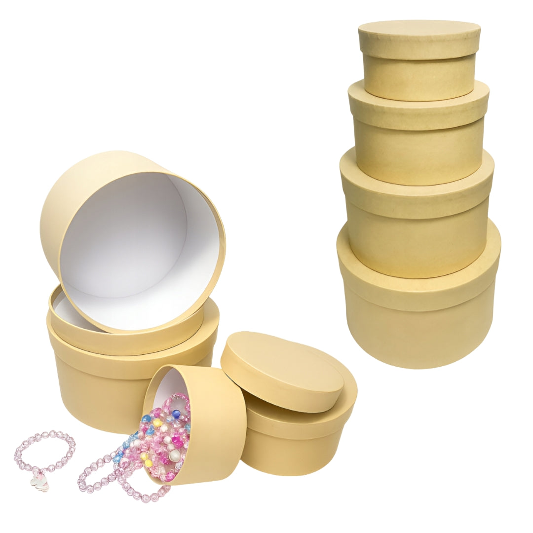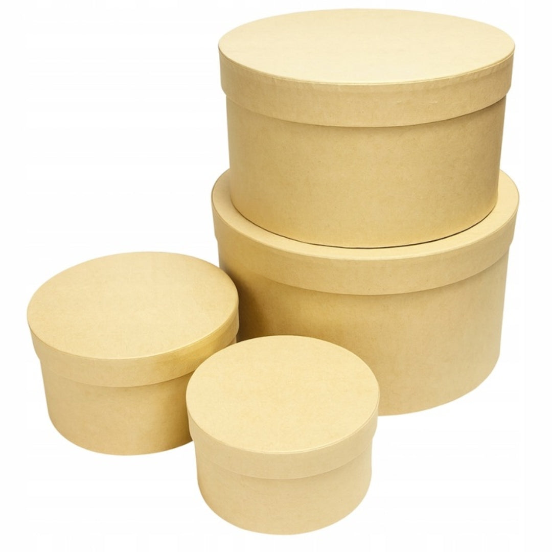 Okrągłe, kraftowe pudełka na prezenty, upominki - ZESTAW 4 SZTUKI
