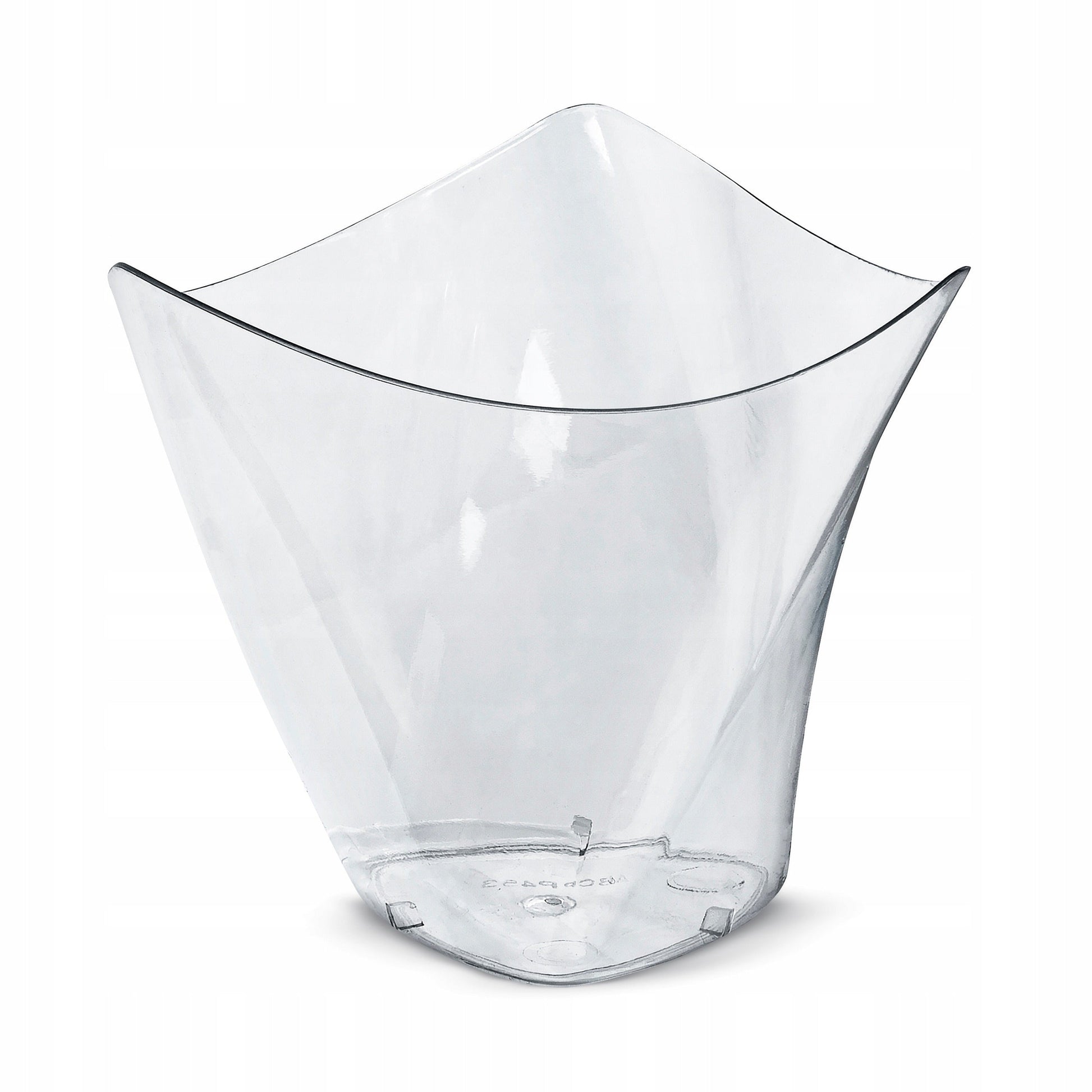 Wykonane z tworzywa sztucznego w kolorze przezroczystym. Sprawdzą się do serwowania słodkich i słonych przekąsek. Idealne podczas przyjęć, uroczystości, aby w wyjątkowy sposób wyeksponować jedzenie. Możemy w oryginalny sposób podać gościom deser typu panna cotta, tiramisu, pudding.