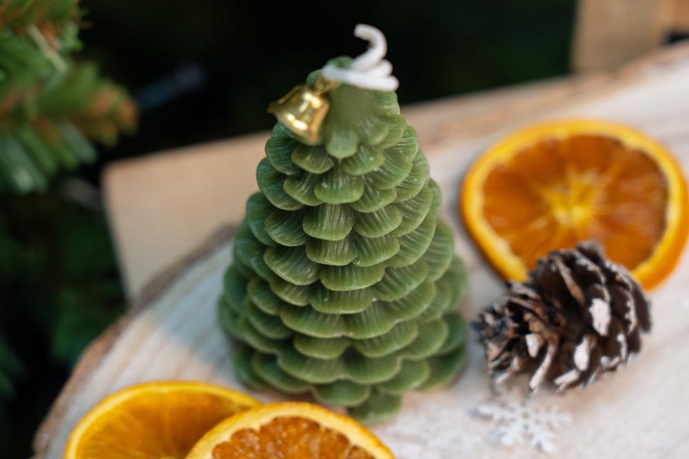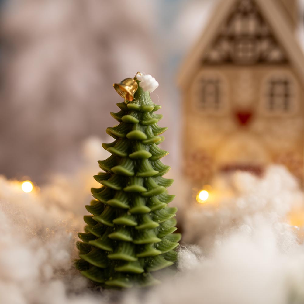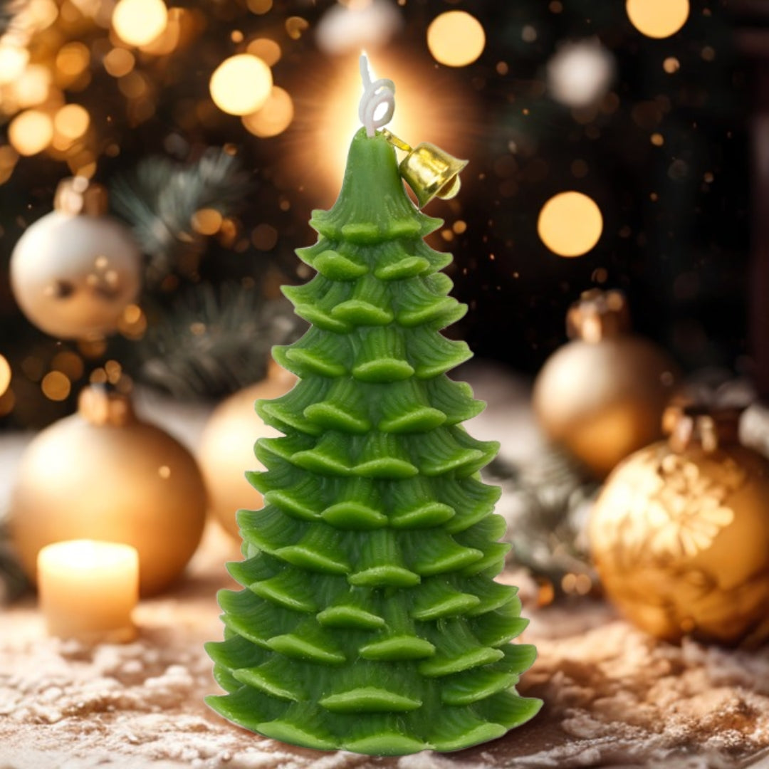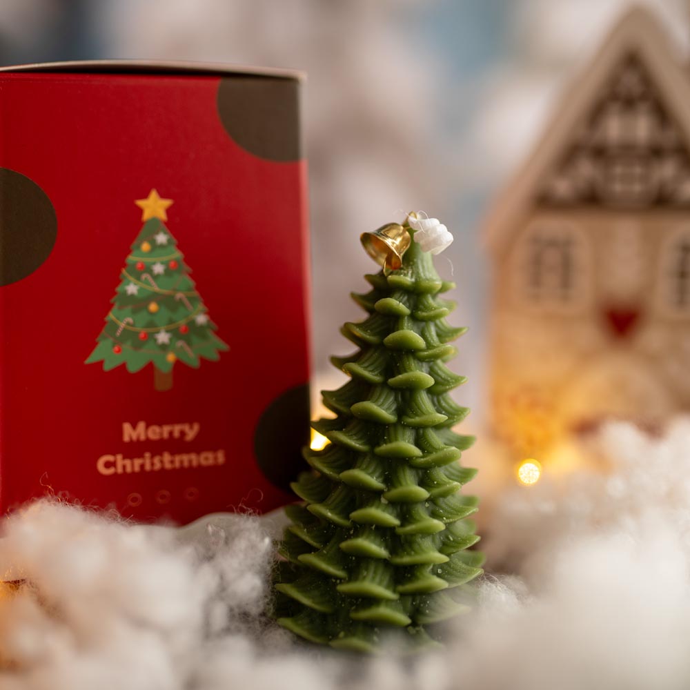 Świeca sojowa zapachowa - CHOINKA ŚWIĄTECZNA Z DZWONECZKIEM - świeczka zapachowa na stół świąteczny