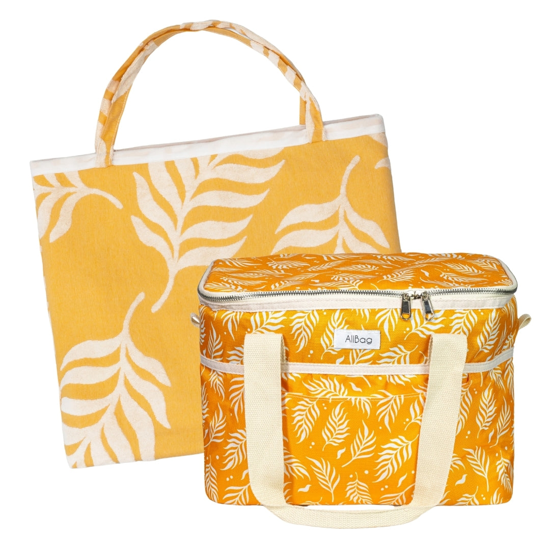 Zestaw wakacyjny ręczniko-torba, torba termiczna POMARAŃCZOWY ZESTAW