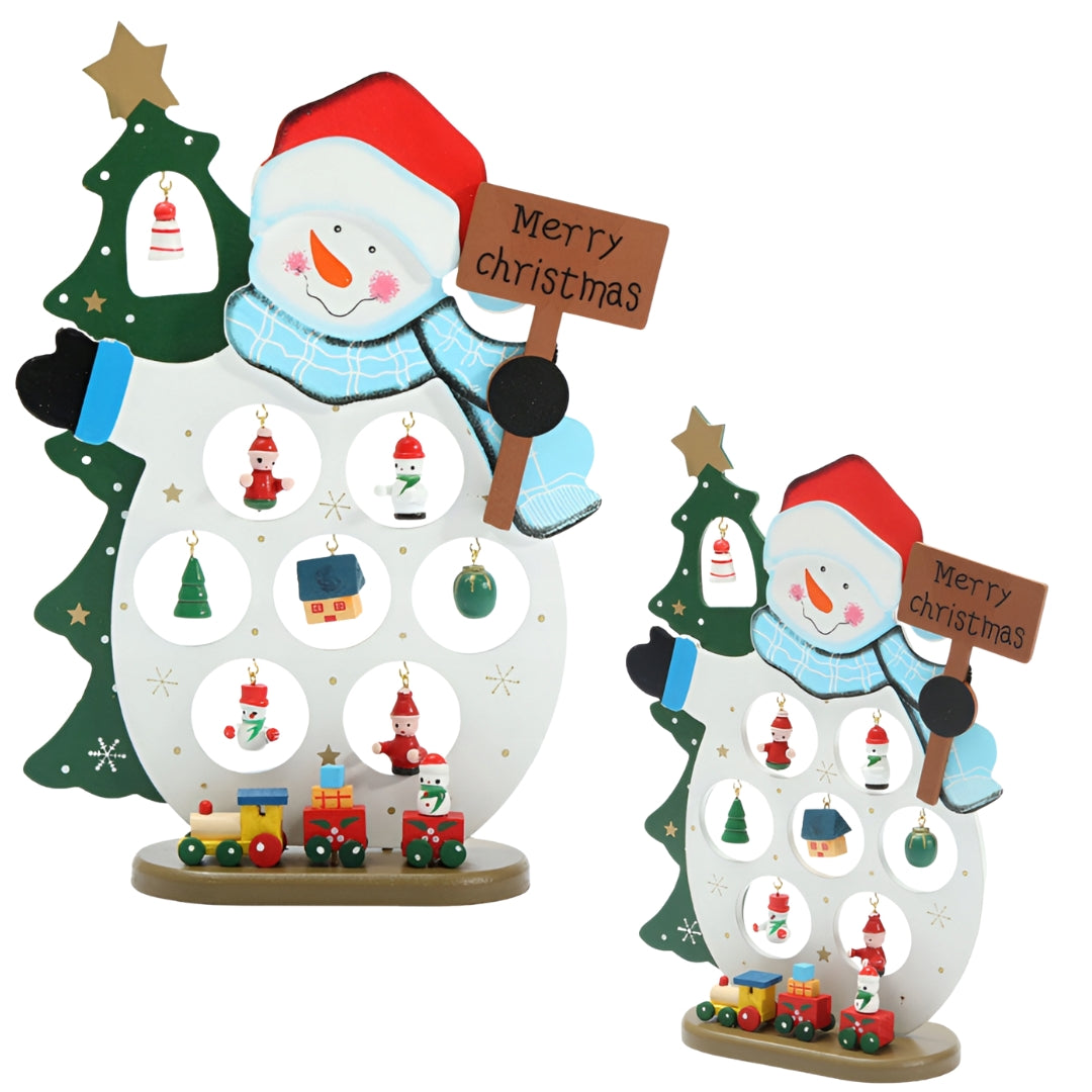Drewniana figurka na biurko "Bałwanek zimowy" - OZDOBA ŚWIĄTECZNA Z ZAWIESZKAMI