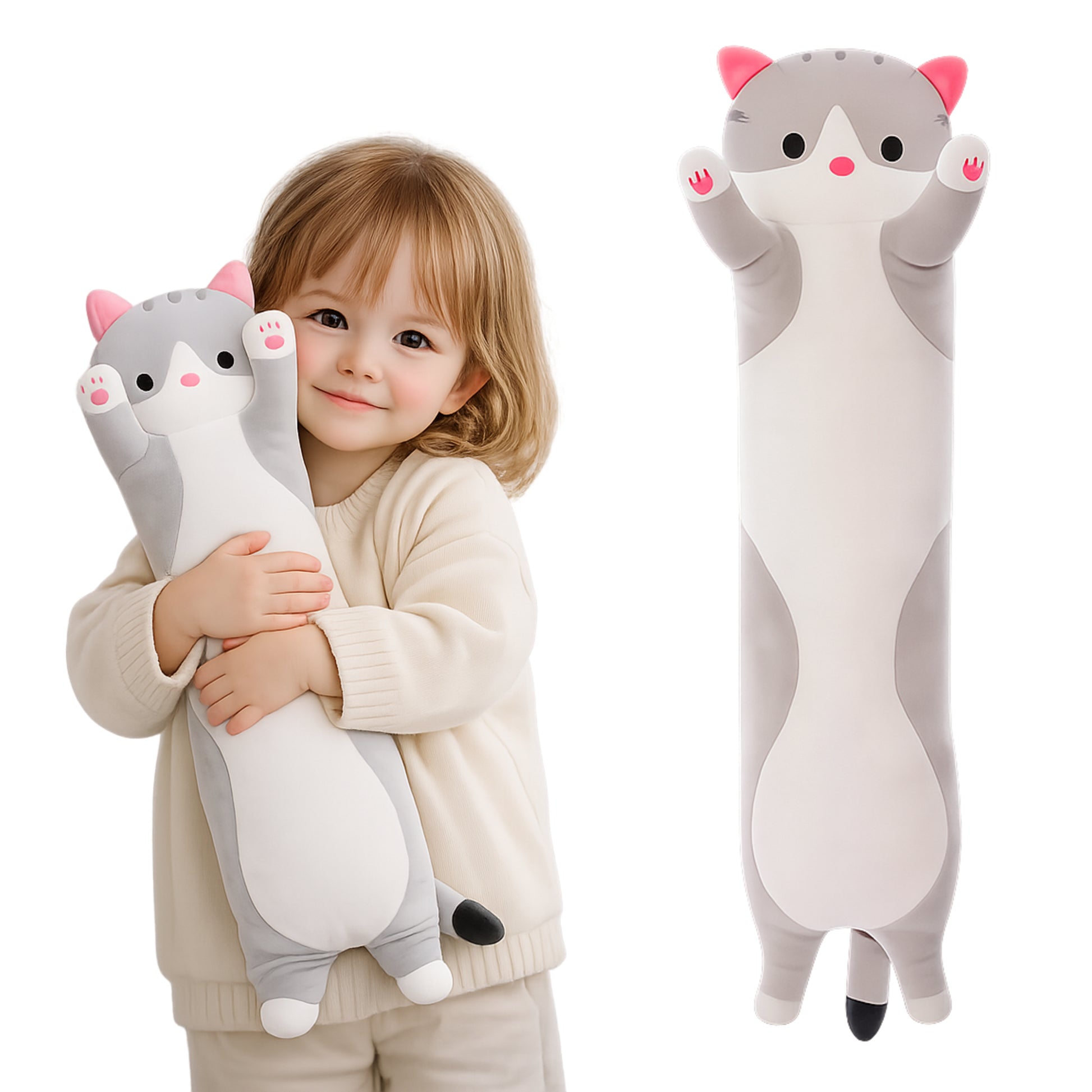 Duży pluszowy kot 50 cm – MIĘKKA MASKOTKA KOTEK, SZARY PLUSZAK DLA DZIECI