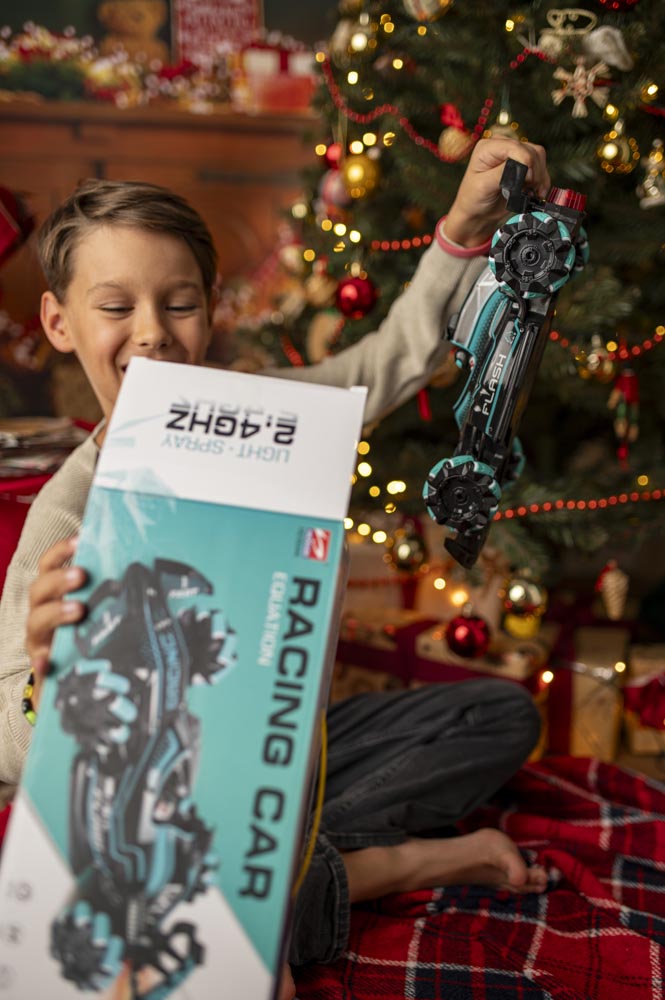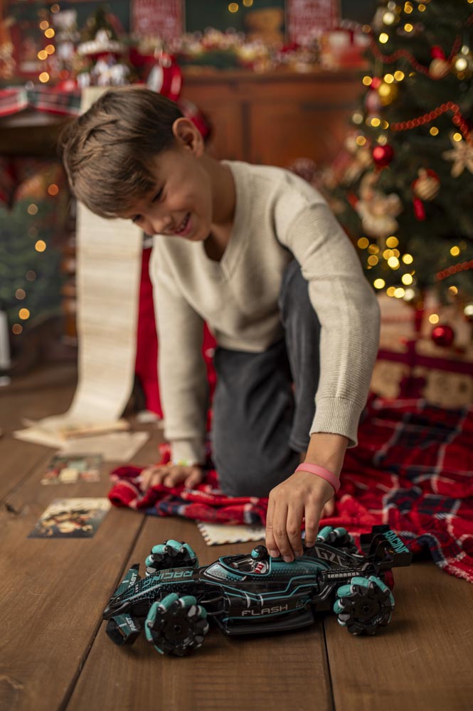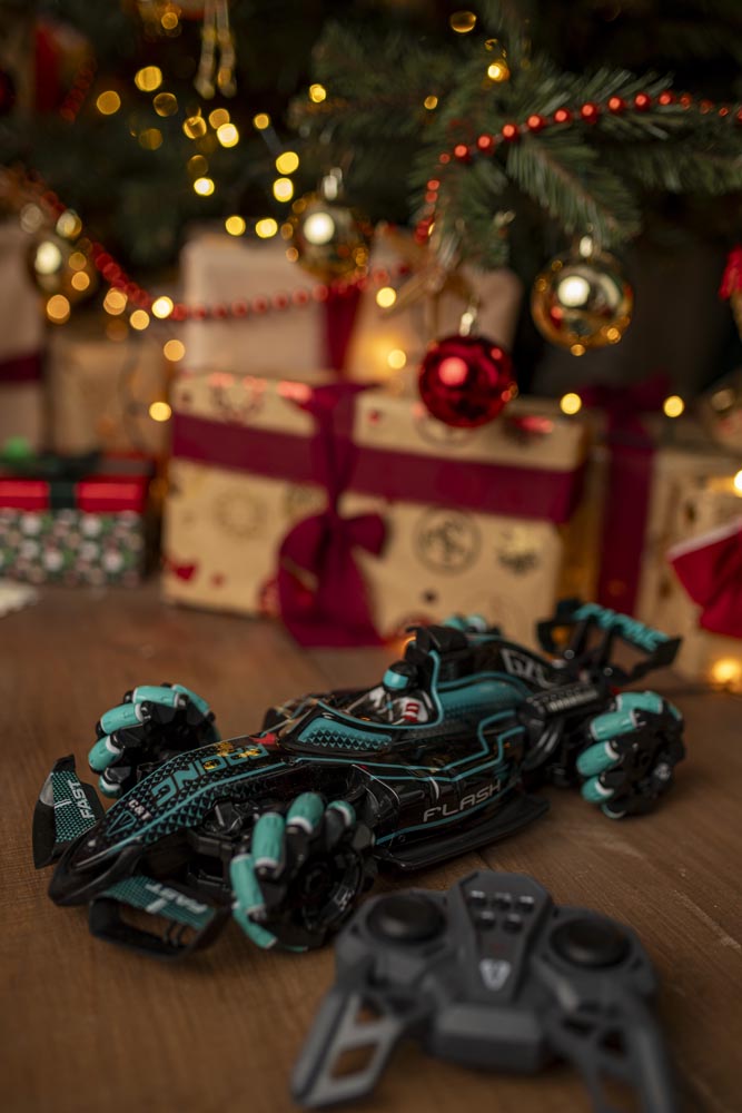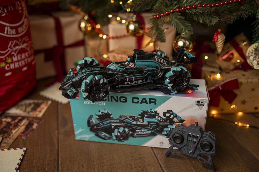 - Tryby jazdy: drift, jazda bokiem, pełny obrót 360°, manewr zygzakiem, zawracanie w miejscu