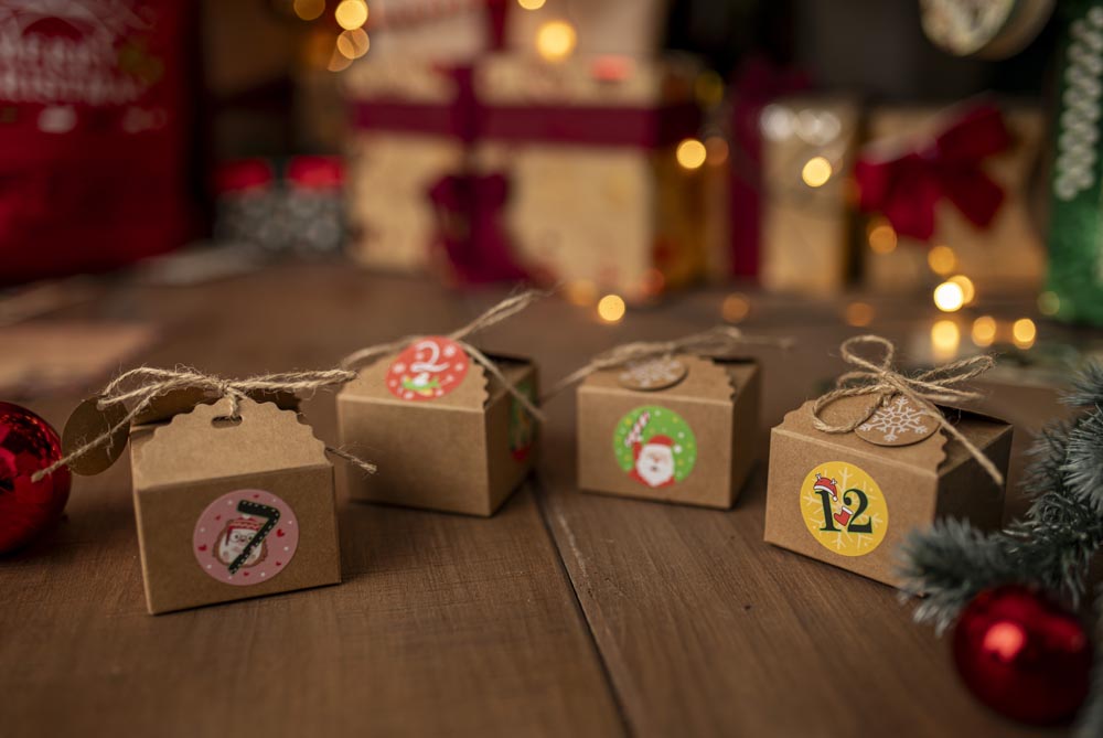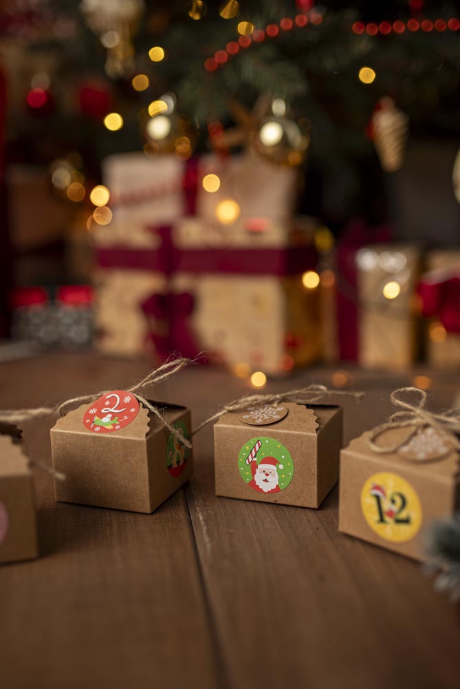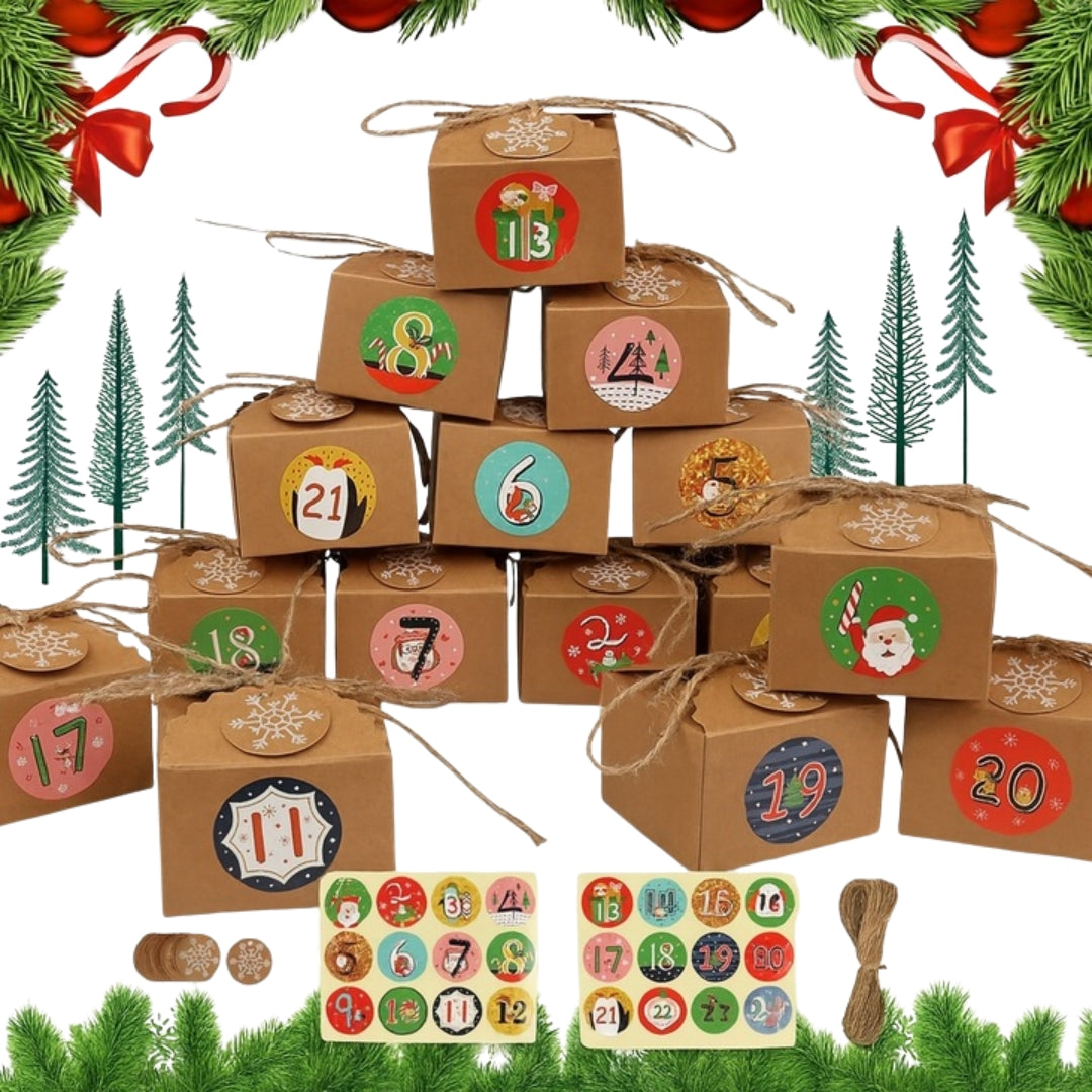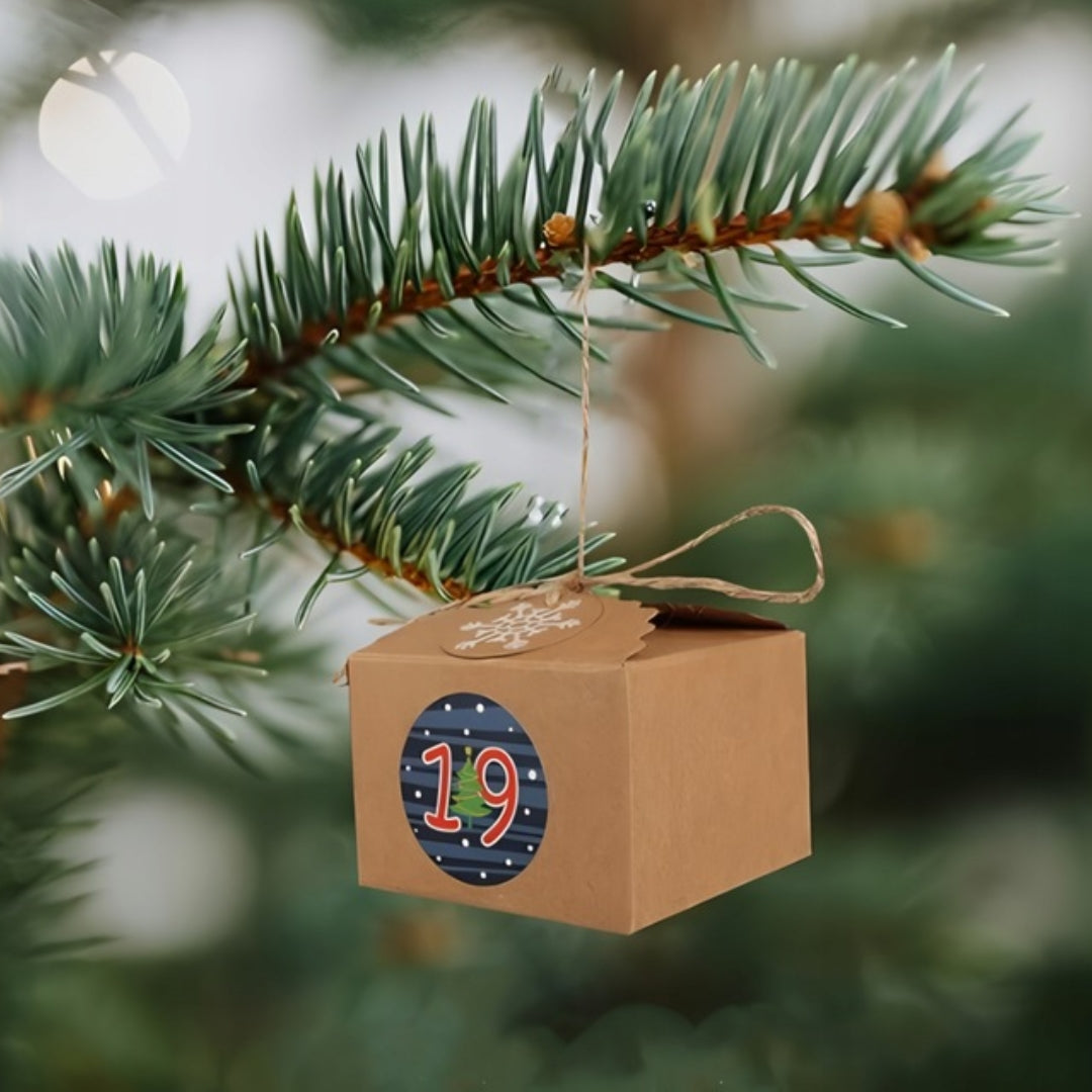 Ilość sztuk w zestawie: 24x pudełko, 24x naklejki z numerami, 1x linka