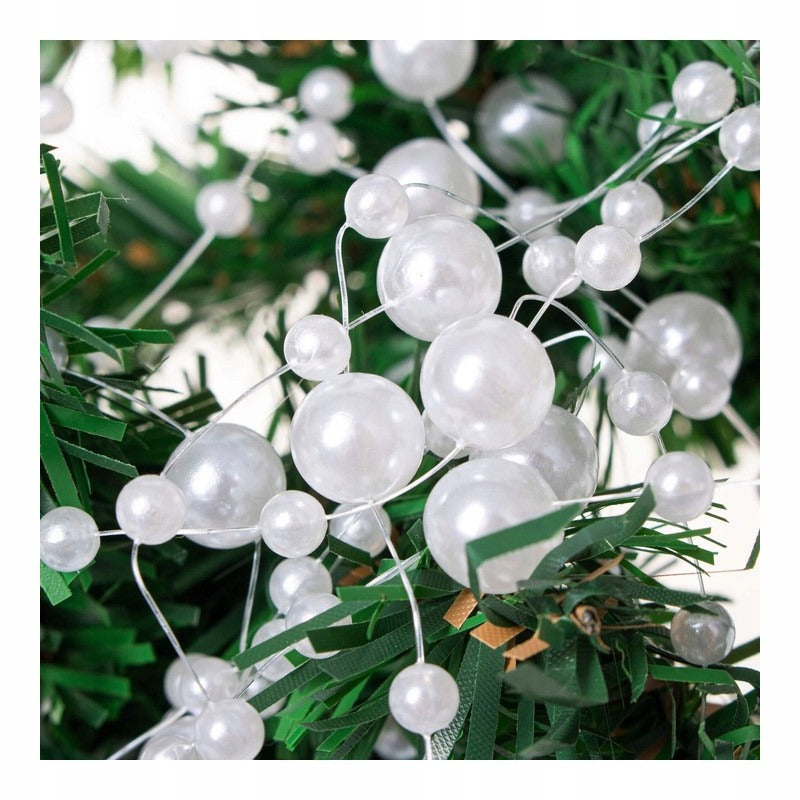 Girlanda z pereł to idealny wybór do udekorowania drzewka, bądź stroika świątecznego. Perełki mają dwie różne długości i są przytwierdzone do żyłki z brakiem możliwości przesuwania się. Dzięki temu nie musimy się martwić, że koraliki zaczną na siebie nieestetycznie nachodzić.