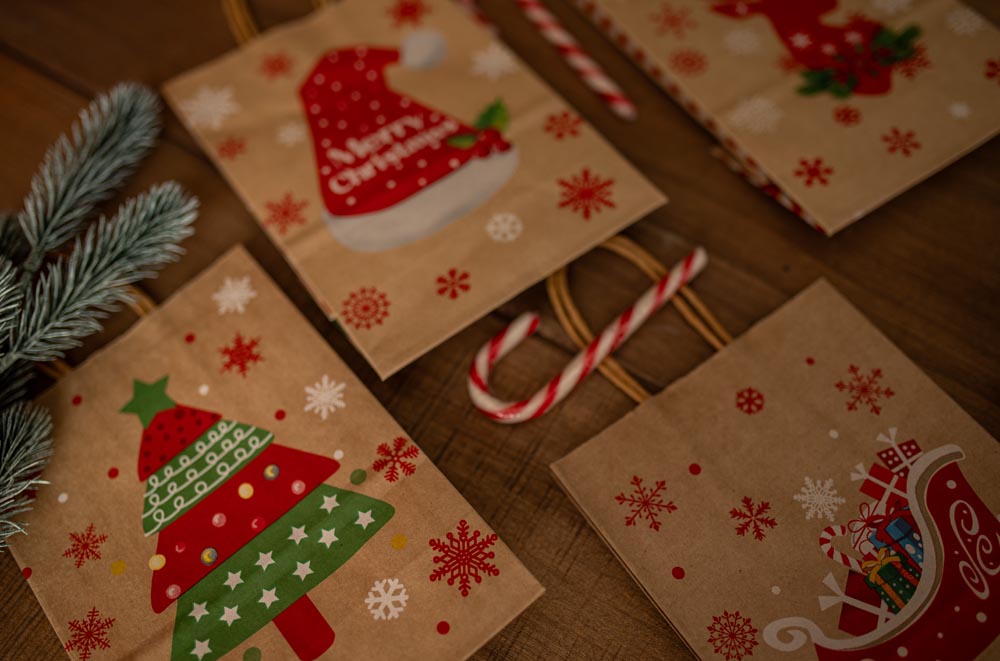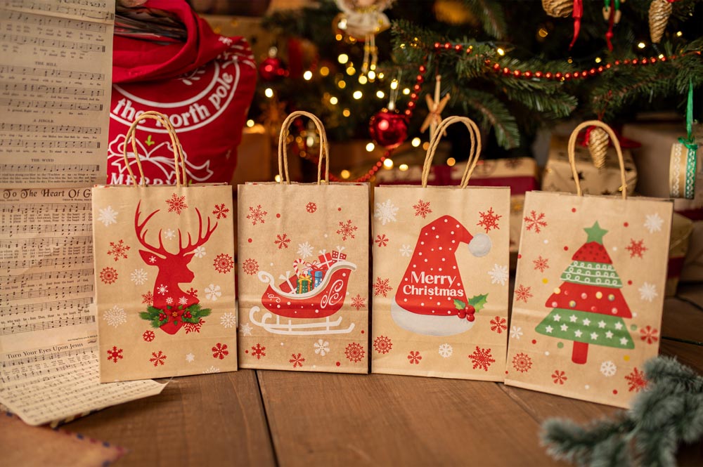 Papierowa torba świąteczna na prezenty - 210x150x80mm - 4 wzory - ZESTAW #2 - MAŁY ROZMIAR