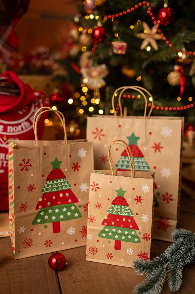 Papierowa torba świąteczna na prezenty - 210x150x80mm - 4 wzory - ZESTAW #2 - MAŁY ROZMIAR