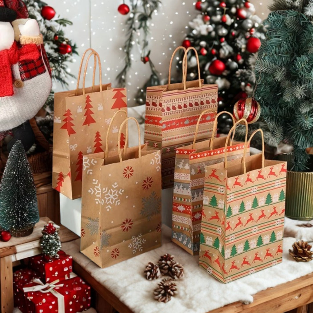 Papierowe torebki świąteczne na prezenty - 210x150x80mm - ZESTAW #10 - MAŁY ROZMIAR