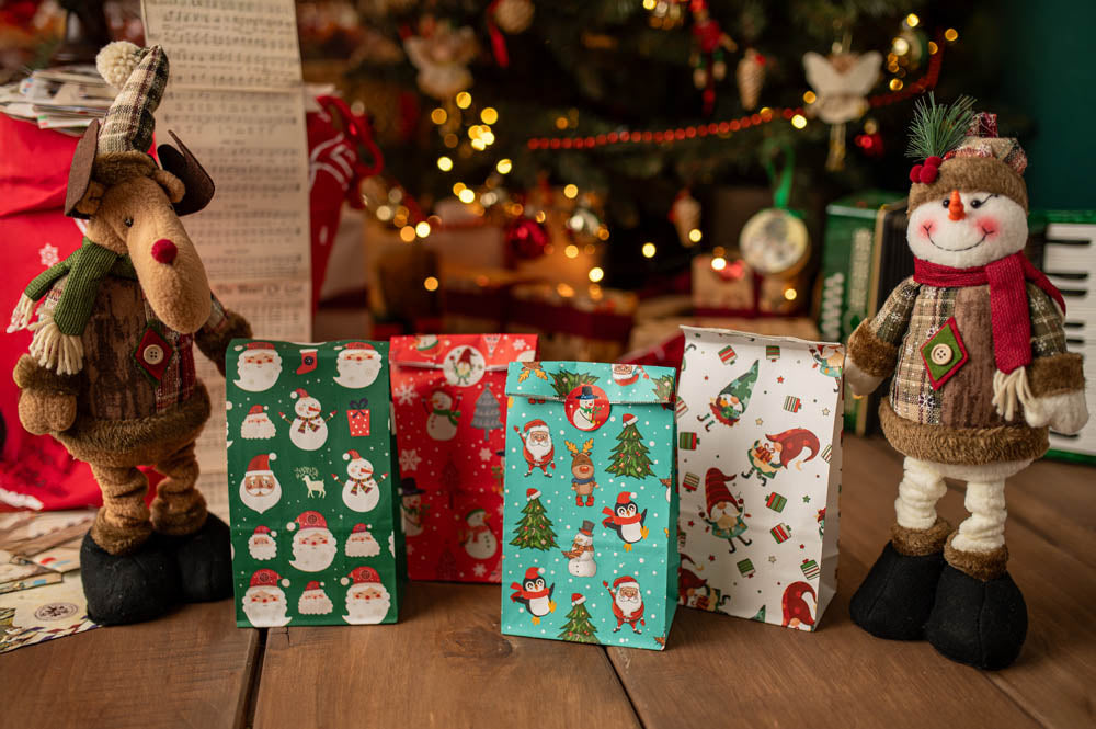 Papierowe torebki świąteczne na prezenty - 240x130x80mm - ZESTAW #13 - MAŁY ROZMIAR