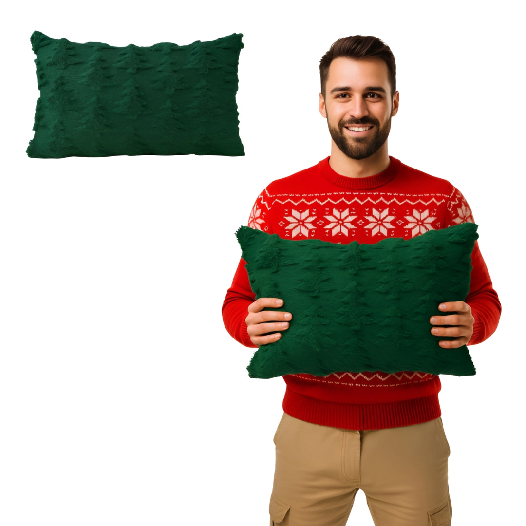 Świąteczna poduszka 50x 30cm - zielona w tłoczone choinki - GADŻET ŚWIĄTECZNY