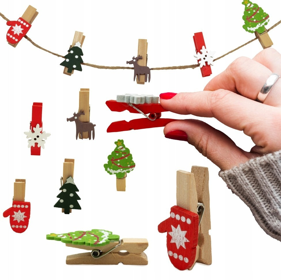 Świąteczne Klamerki Drewniane, dekoracyjne 10szt.