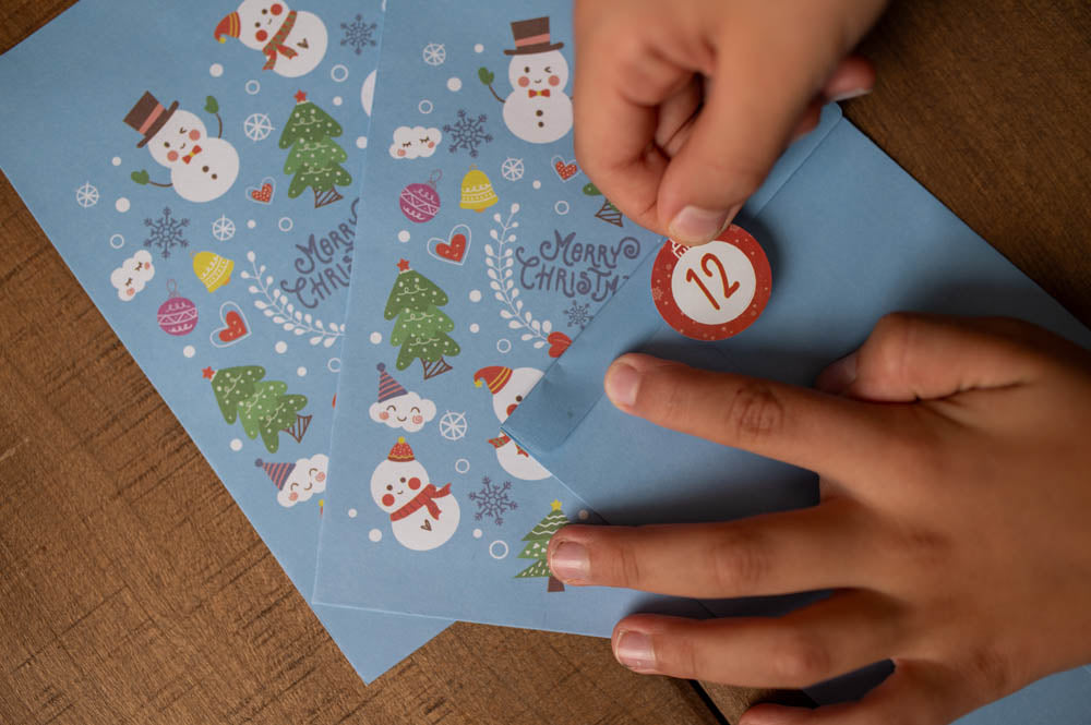 - Naklejki świąteczne: 24 sztuki ze wzorami w formie znaczków