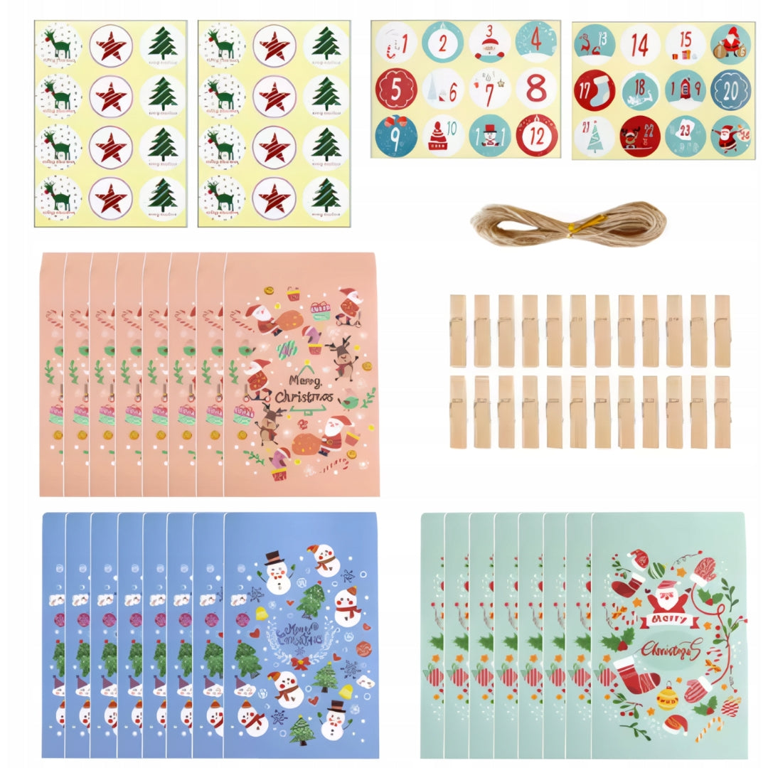 Ilość sztuk w zestawie: 24x torebka, 24x naklejka, 24x klips, 1x sznurek