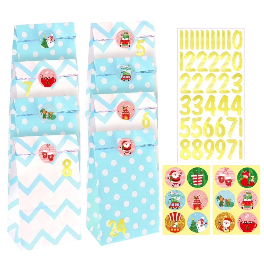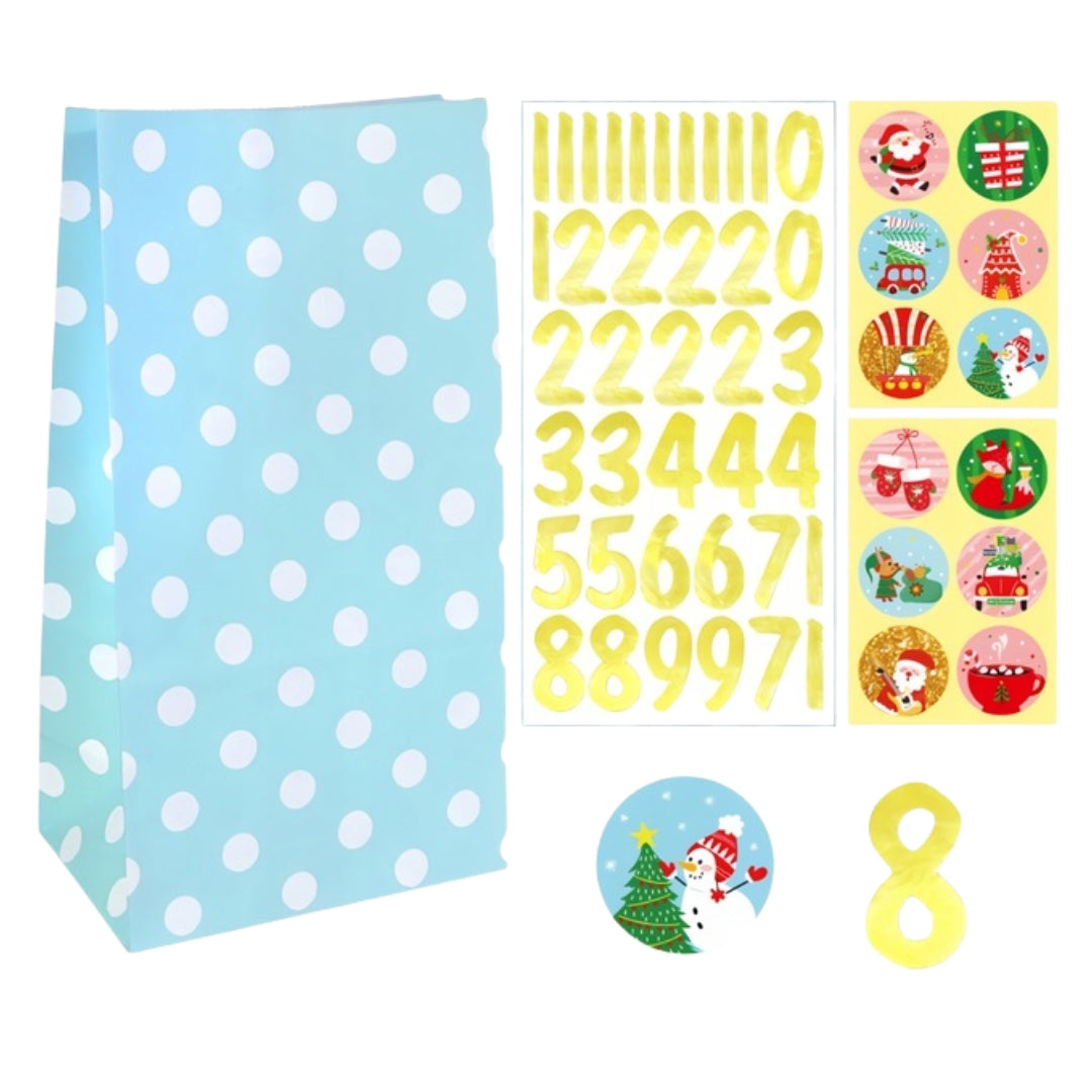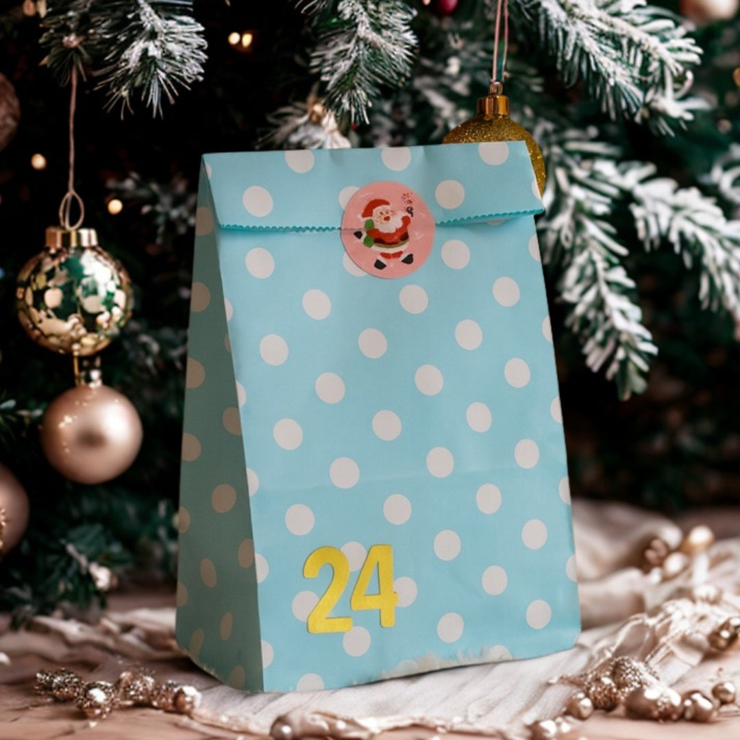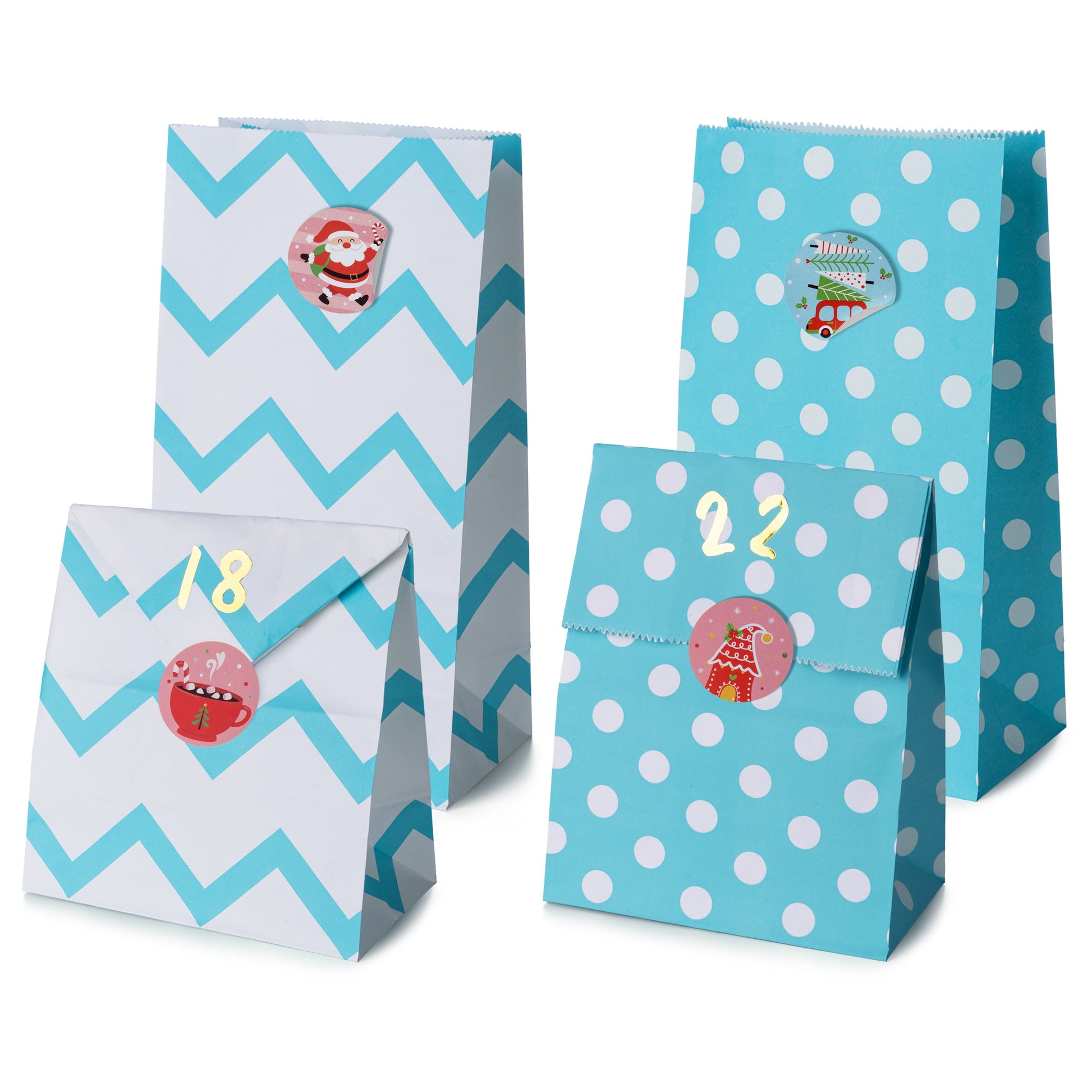 Świąteczny kalendarz adwentowy, torebki prezentowe - niebieskie