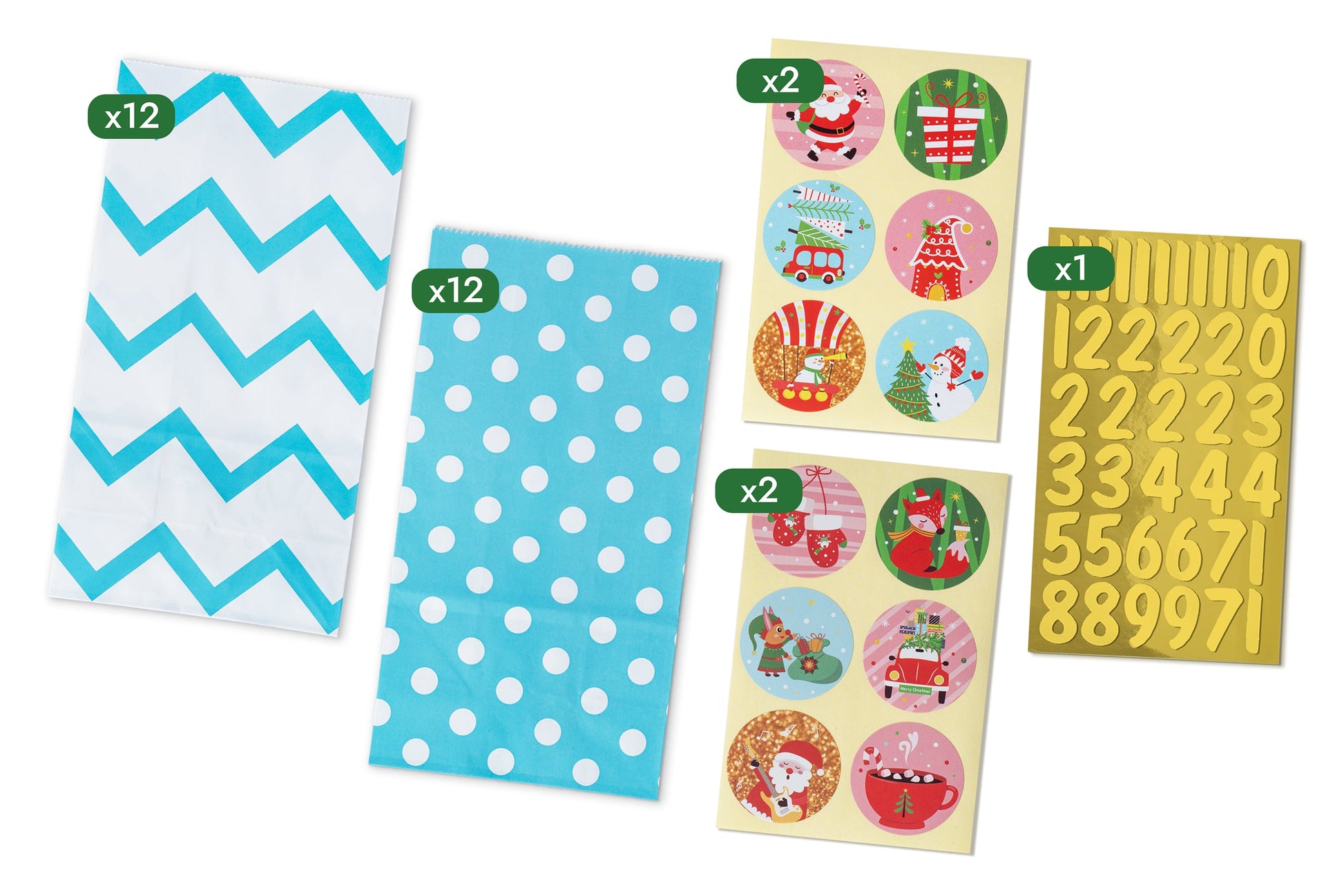 Ilość sztuk w zestawie: 24szt torebek, 24szt klipsów, 24 naklejek.