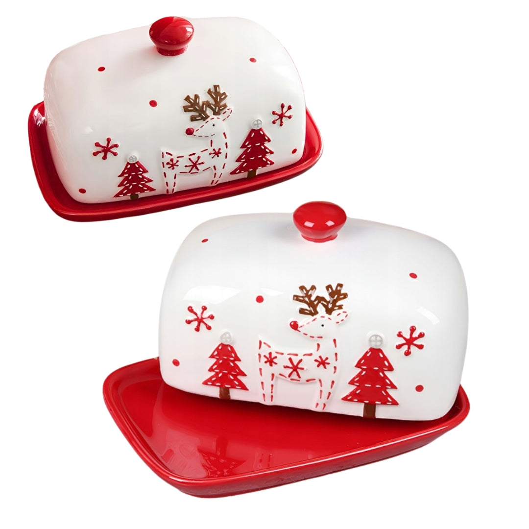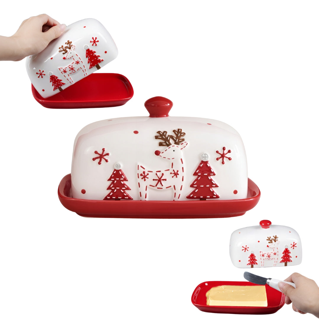 Świąteczny pojemnik na masło, maselniczka z pokrywką