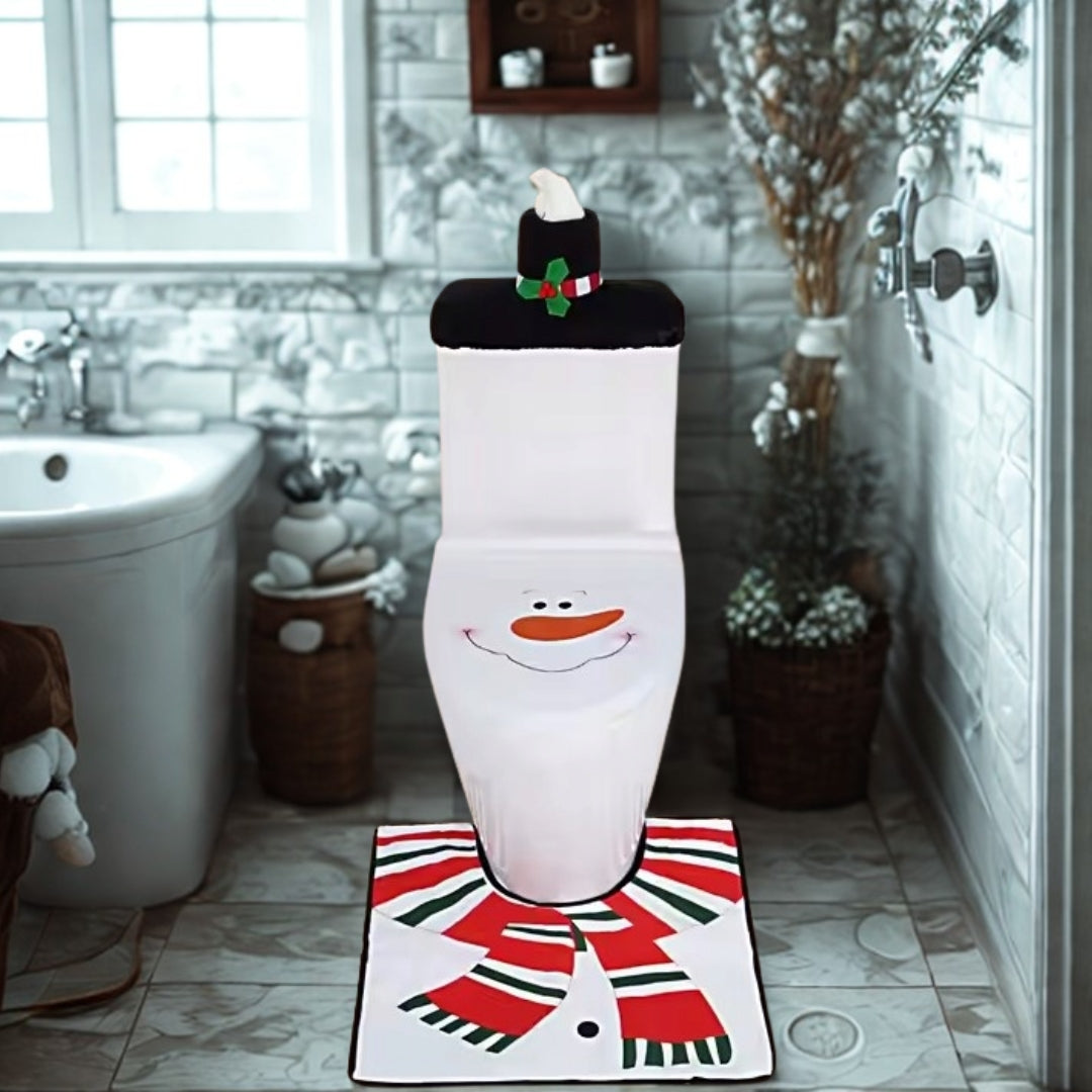 Świąteczny zestaw do łazienki pokrowiec WC bałwanek