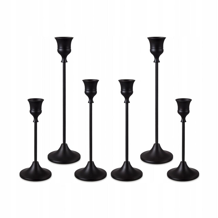 Świecznik metalowy czarny matowy – ZESTAW 6 szt., ELEGANCKA DEKORACJA STOŁU NA ŚWIECE