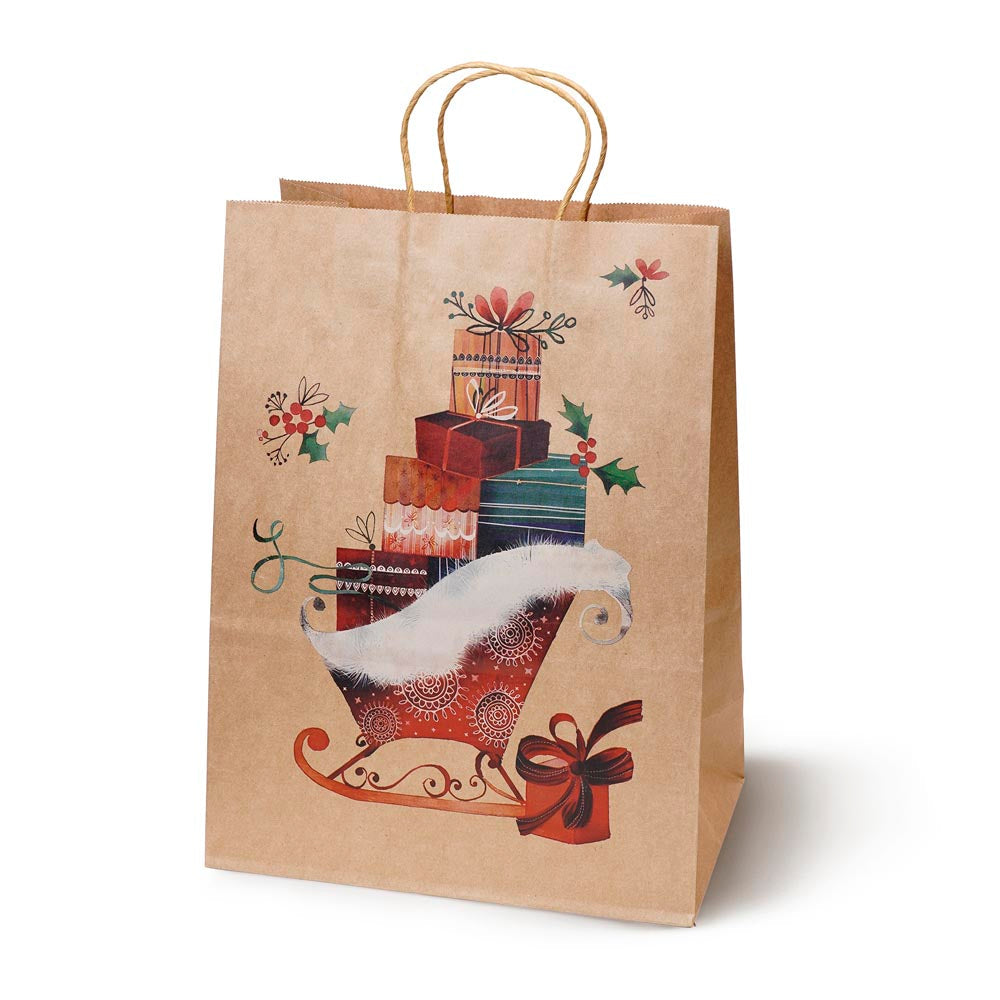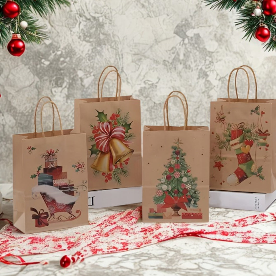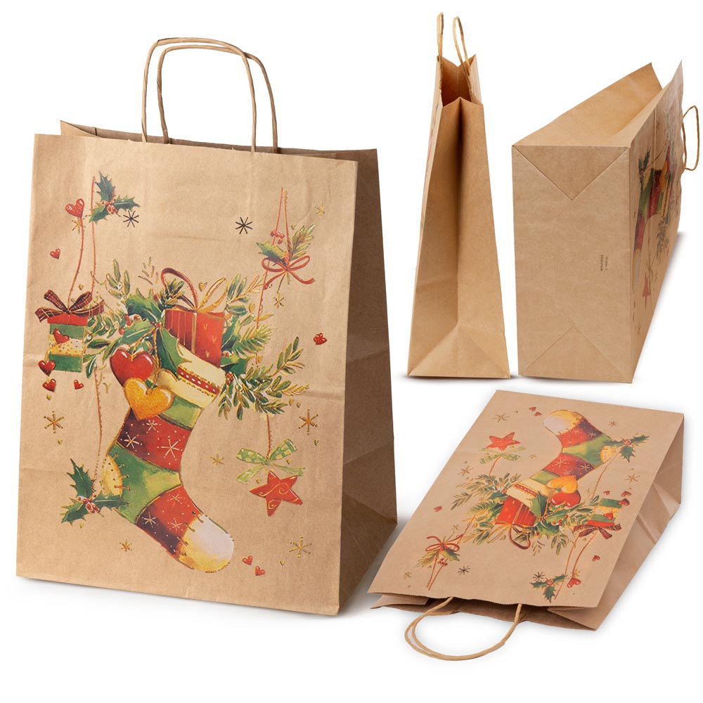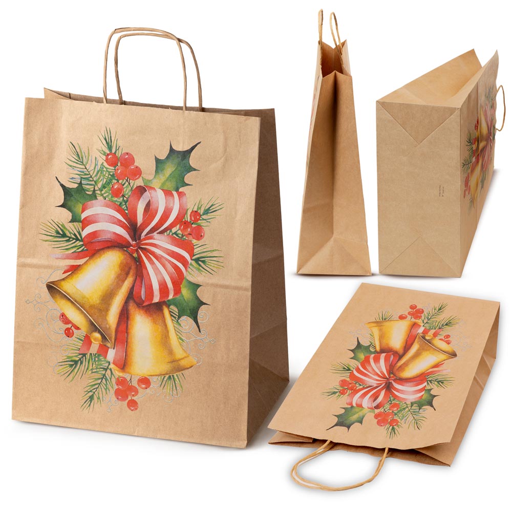 Torby papierowe na prezenty - ŚWIĄTECZNE - 330x260x120mm - 4 wzory - ZESTAW #4 - DUŻY ROZMIAR
