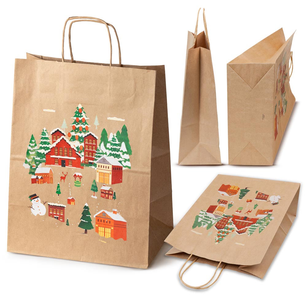 Torebki papierowe na prezenty - ŚWIĄTECZNE - 270x210x110mm - 4 wzory - ZESTAW 3# - ŚREDNI ROZMIAR