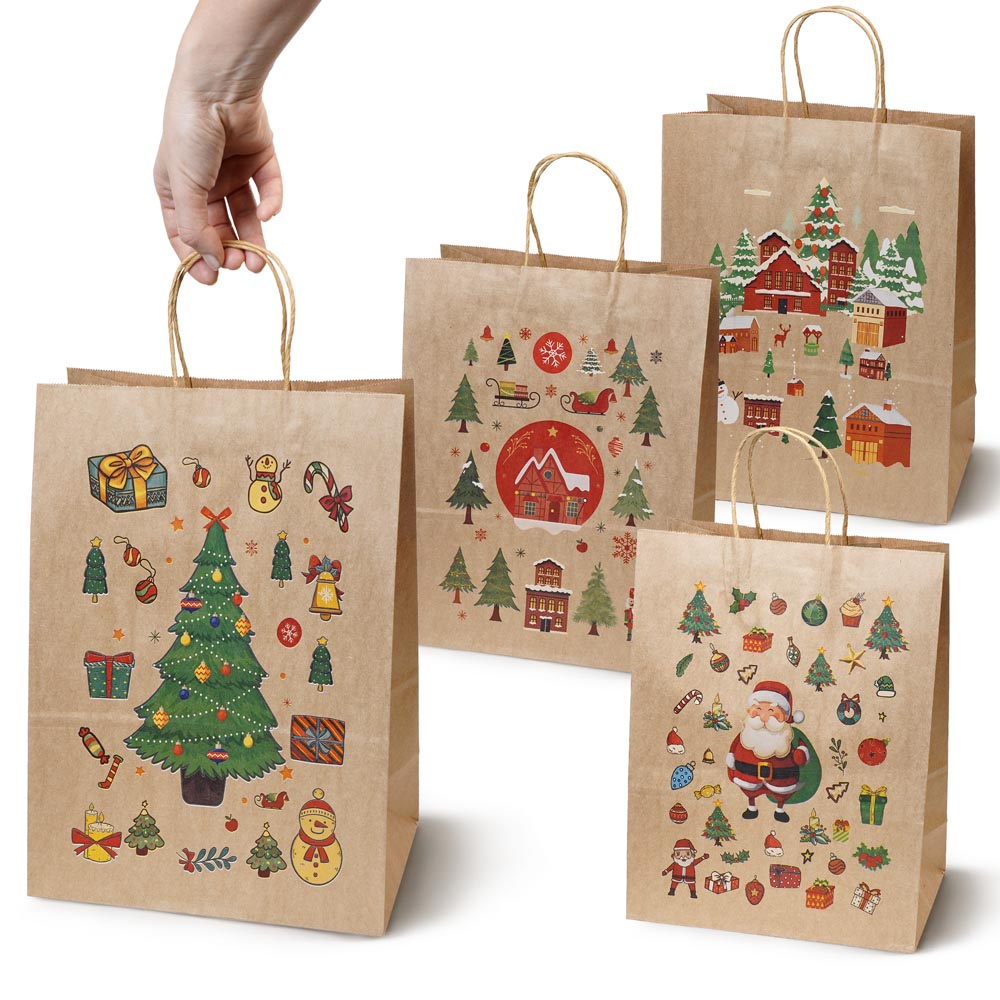 Torebki papierowe na prezenty - ŚWIĄTECZNE - 270x210x110mm - 4 wzory - ZESTAW 3# - ŚREDNI ROZMIAR