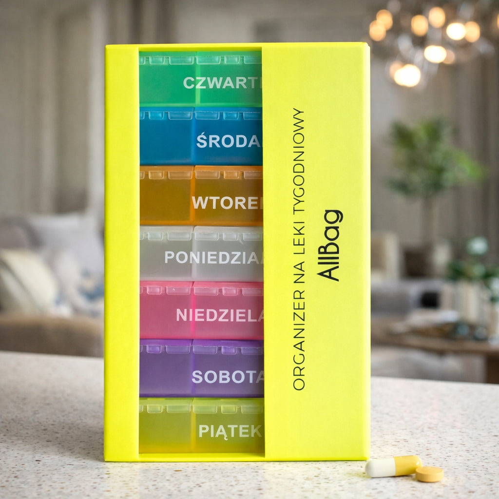 - Funkcja: organizacja leków na cały tydzień, idealna do domu i w podróży