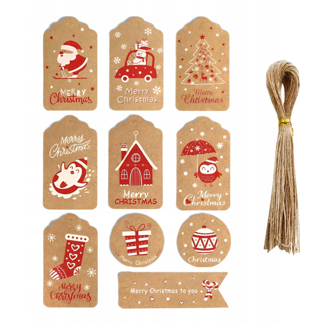 Winietki do prezentów zestaw 50szt + 50 sznurków