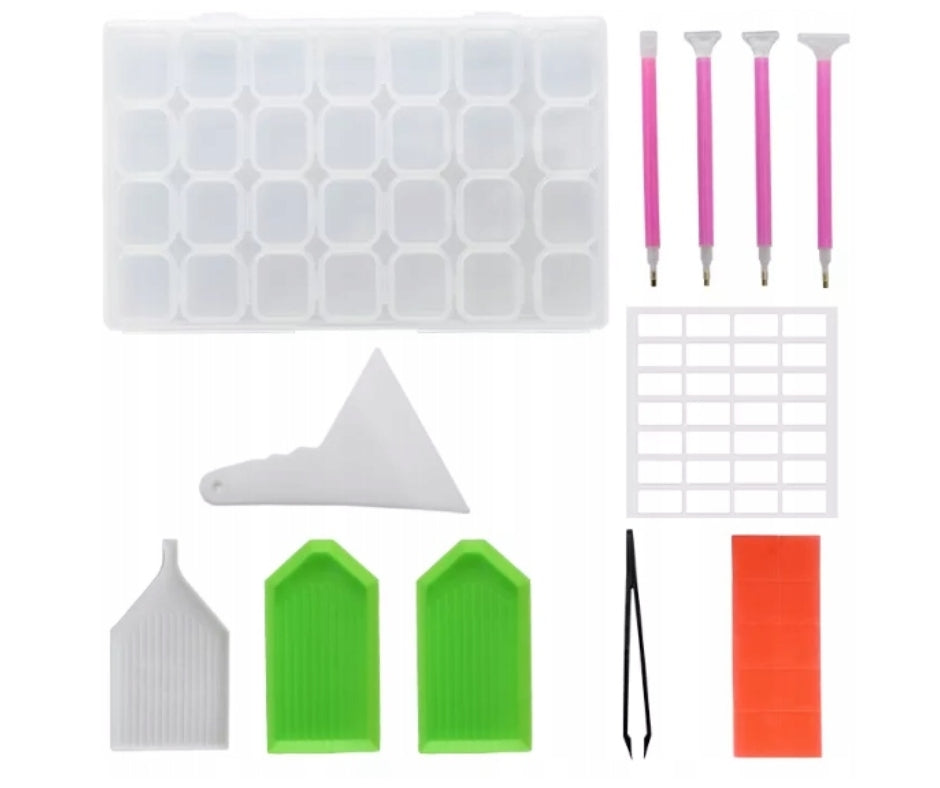 Zestaw akcesoriów do diamond paintingu – organizer + narzędzia MAŁY ZESTAW