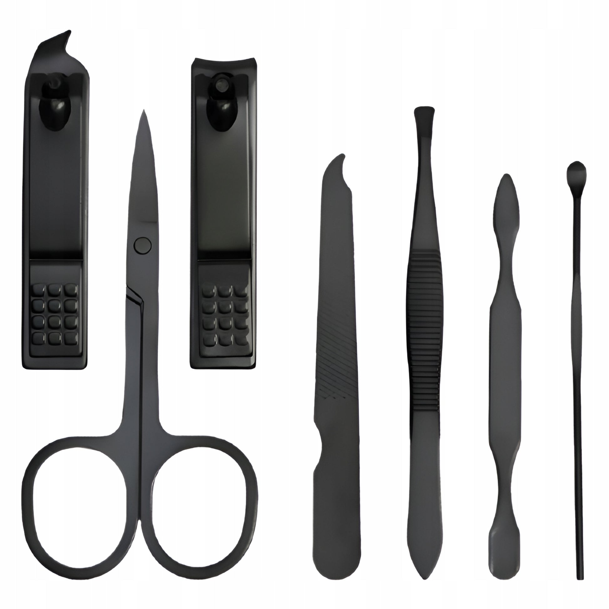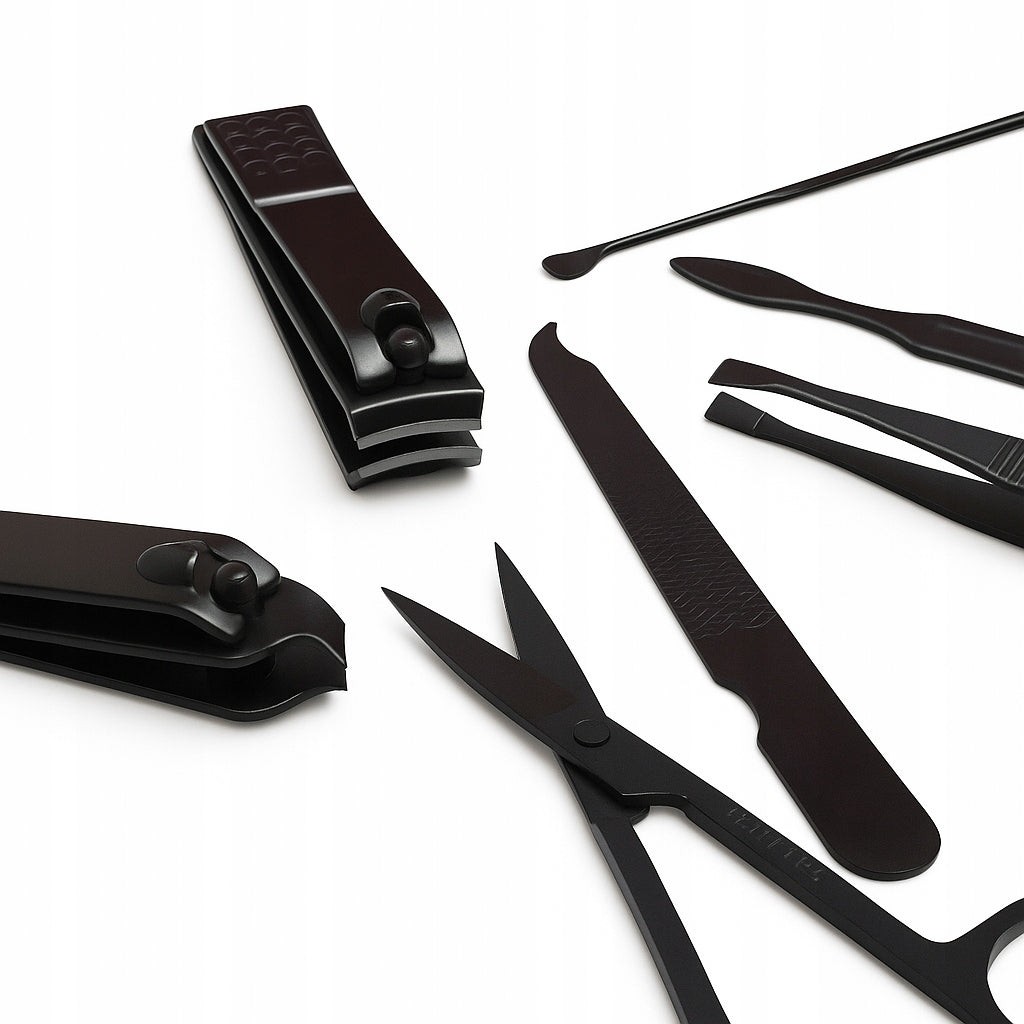 - Zawartość zestawu: nożyczki, obcinaczki do paznokci, pilnik do paznokci, pęseta, szpatułki do skórek oraz etui