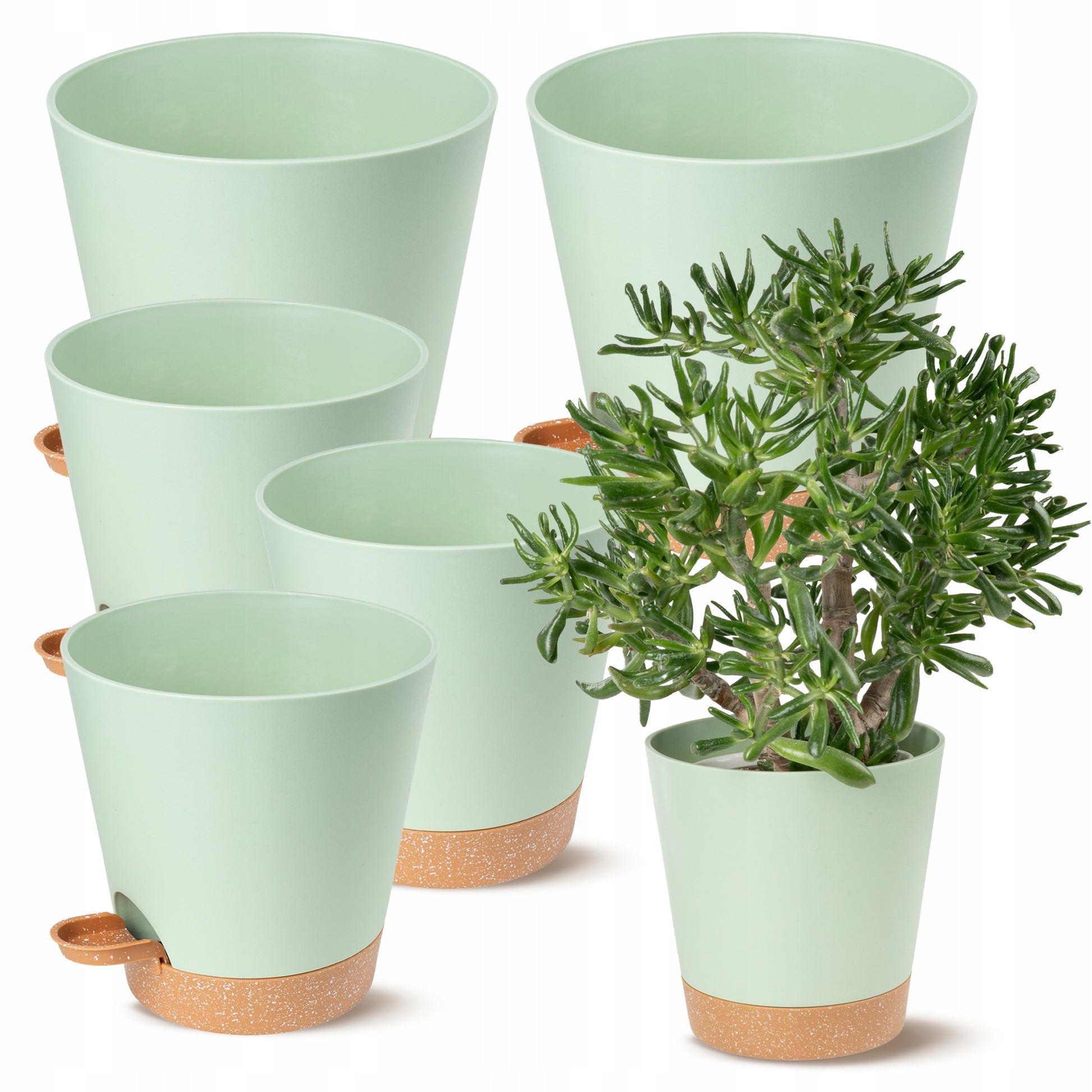 - Zestaw: komplet 5 doniczek z podstawkami, idealnych do roślin domowych i balkonowych