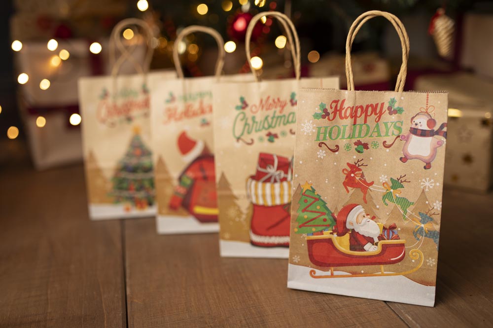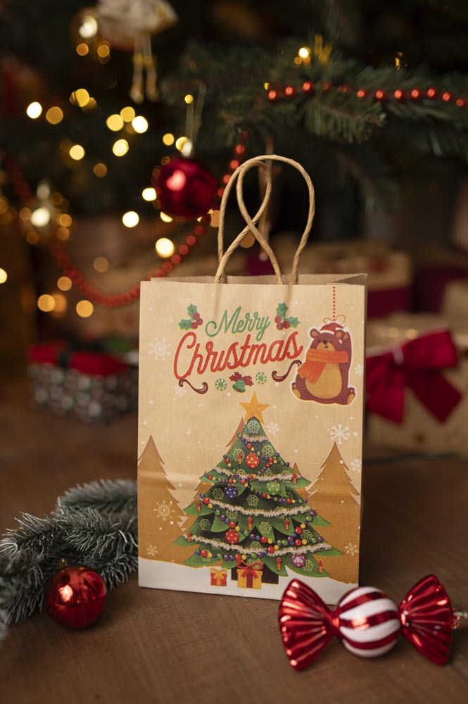 Zestaw Papierowych torebek świątecznych - 210x80x150 - 4 rodzaje - ZESTAW #1 - MAŁY ROZMIAR